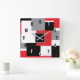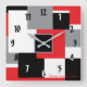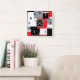 Modern Geometric Square Shapes Red Black White Wall Clock