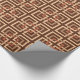 Wrapping paper in a retro modern pattern of interlocking squares, in tan, light mocha, and rust brown, on a dark chocolate brown background