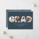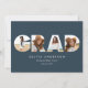 Geometric modern typography elegant natural navy blue and white multi photo graduation announcement card.