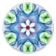This pretty, modern geometric design features a white daisy within a lavender hexagon shape. Surrounding colours are shades of green and blue.