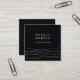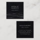 Elegant, striking and modern square business cards feature a pattern of crisscrossed geometric lines in white, printed on a rich black card. Personalise the front with two lines of custom text and add your full contact information to the reverse side. A clean-lined, sleek and professional choice for any occupation.