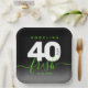 Celebrate the big four oh with this stylish modern design, which features striking black, white, and bright green block and handwritten lettering set on a rich black to smoky grey background.