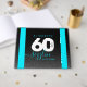 Celebrate the big six oh with this stylish modern design, which features striking block and handwritten lettering set on alternating rich-black-to-smoky-grey and ice blue backgrounds.