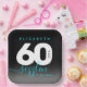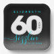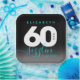 Celebrate the big six oh with this stylish modern design, which features striking black, white, and ice blue block and handwritten lettering set on a rich black to smoky grey background.