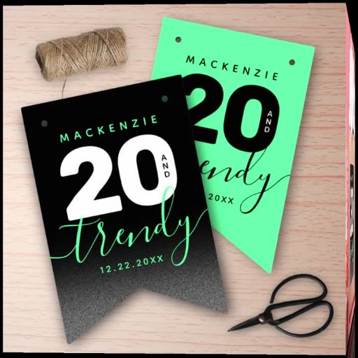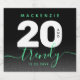 Celebrate the big two oh in style with this modern design, which features striking black, white, and mint green block and handwritten lettering set on a rich black to smoky grey background.
