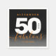 Celebrate the big five oh with this modern design, which features striking black, white, and orange block and handwritten lettering set on a rich black to smoky grey background.