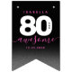 Celebrate the big eight oh with this stylish modern design, which features striking block and handwritten lettering set on alternating rich-black-to-smoky-grey and pink backgrounds.