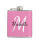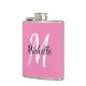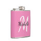 Modern Girly Pink Monogram Name + Initial Hip Flask
