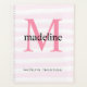 Modern Girly Pink Stripes Monogram Initial name Planner