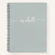 Girly Sage Green Glam Monogram Name Script Signature Custom Personalised Notebook. These design featuring your first name in a pretty hand lettered style swash tail font calligraphy (or typography) on sage green or dusty green colour background. Easy to customise and can be used as a Diary Planner, Sketchbook, Cookbook, Journal and more. Also great stylish feminine gift for bridal shower, mother’s day, birthday, wedding, sweet 16 birthday party and baby shower, business, graduation, back to school, professional work and for anyone who loves feminine minimalist style.