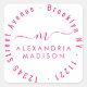 Modern Girly Script Monogram Address Magenta Pink Square Sticker