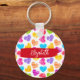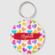 Modern Girly Vibrant Doodled Hearts Pattern Name Key Ring