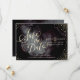 Glamour gold hand lettering calligraphy design and gold dots confetti on dark black sky night watercolor background, shimmer faux metallic gold glitter effect, modern, chic, elegant and classy, perfect for vintage wedding or winter wedding in evening. Custom your own save the date card for your wedding invitation set.