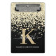 Elegant, Glam, Bling, Sparkle Girly Shiny faux black and gold glitter diamond confetti custom personalised monogrammed mini clipboard. Featuring a yellow gold faux diamonds confetti on black background. Pretty first name signature template in hand written calligraphy swash tail font script. Easy to personalise your name and monogram initial. Please note: this design is a printed photo effect with no real glitter and jewel. Perfect feminine gift for girls, birthday, wedding, bridal shower, mother, sister, business, office, or anyone who loves pretty stylish glamourous style.