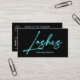 Modern glam blue neon lashes technician manicurist script logo qr code business card, add your social media, logo and qr code,