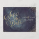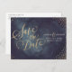Modern glam gold glitter calligraphy save the date announcement postcard