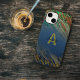 Trendy stylish personalised iPhone case design featuring faux glitter on a blue background. The text is fully customisable. To change it use the Personalise option. For more changes, such as changes to the font, font colour or text layout, use the Edit design tool option.