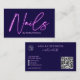 Modern glam purple neon nails script logo qr code business card
