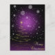 A gleamy and snowy Christmas illustration featuring a shining christmas tree and snowflakes on a purple background.