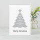 Elegant Christmas card featuring a silver glitter pine tree and “Merry Christmas” in a stylish calligraphy script. The subtle sparkle and minimalist design create a modern yet festive look. Perfect for sending warm holiday wishes with a touch of trendy elegance. A beautiful choice for anyone who loves unique typography, seasonal charm, and a contemporary Christmas aesthetic.