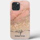 This luxurious design features a stunning ombre effect that transitions from shimmering gold glitter to elegant rose gold marble. Personalised with your monogram,initials or any text. This case exudes sophistication and style, making it a perfect blend of glamour and functionality. Ideal for those who love a chic, modern aesthetic, this iPhone case offers both protection and a unique, personalised touch.