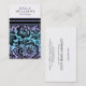 Elegant combination of modern glitter print in turquoise blue and purple tones with black floral damasks overlay. Black decorative stripes accents. Double sided fully customisable event designer business card template.