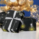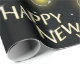 make your holiday gifts stand out with this unique happy new year wrapping paper. the pattern features a contemporary illustration of glowing light bulbs and sparkling stars, symbolizing the bright possibilities of a fresh start. this high quality gift wrap is perfect for boxing up new year party favors, corporate gifts, or special surprises for friends and family. the elegant black and gold color palette adds a luxurious feel to your presentation, ensuring your presents look as brilliant on the outside as they are on the inside.