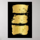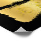 Transform your living space with this exquisite piece of artwork: an elegant, minimalist modern abstract featuring striking yellow gold brush strokes accented by delicate gold paint splatters on black background. This captivating masterpiece will effortlessly become the focal point of your living room, work area, or any corner of your home.