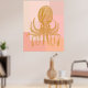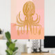This wall art features a detailed gold squid illustration layered over soft blush and peach color blocks for a modern coastal look. The vintage-inspired linework adds texture while the warm palette keeps the piece calm and contemporary. Ideal for beach houses, modern living rooms, or creative spaces that lean coastal without feeling nautical. A bold yet refined statement for ocean-inspired interiors.