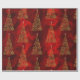 A gorgeous gold and red Christmas wrapping paper featuring a pattern of metallic golden Christmas trees, all made of little gold snowflakes and snowflake shapes, on a luxe, shiny red background. This very elegant Christmas paper will be sure to add a sophisticated and luxurious touch to your gift wrapping these holidays.