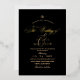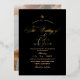 Modern stylish black and gold royal wedding invitation with an elegant handwritten font with curls and a monogram of the bride and groom. Classy and elegant, simple and modern invitation.