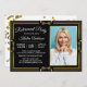 The design is so elegant and modern that features a modern Elegant Black Classy and Golden accent style with Your picture on the right side along with a handwritten script design. Also, there is a chic frame of beads where you can add your photo to make the invitation extra special and customisable.