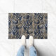 A stylish trendy hand drawn zebra head pattern, safari, jungle wild animals print, a modern design filled with dark blue and yellow gold animal zebra heads blend, forming a zebra stripes print abstract modern pattern, on a simple light grey colour background. This beautiful, exotic stylish animal hand paint trendy design, image print, fits perfectly for any occasion, everyday wear, or home decor.