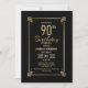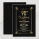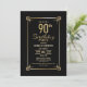 A modern black and gold 90th birthday party invitation. Click on “Personalise this template” to add your own information.