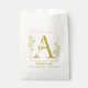 Stylish favour bag features gold hand-drawn botanical frame with botanical letter A in centre. Personalise with couple's name and date or custom message,