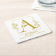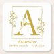 Stylish paper coaster features gold hand-drawn botanical frame with botanical letter A in centre. Personalise with couple's name and date