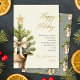 Modern Gold Bow Watercolor Christmas Tree Happy Holiday Card