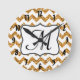 Modern Gold Glitter Chevron Zig Zag Stripe Fabric Print Pattern Monogram Initial Wall Clock Personalised