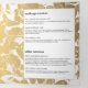 Your name or business name is elegantly displayed within a simple black circle for a very chic and stylish aesthetic on this tri-fold brochure. Faux gold flowers fill the background. A creative design treatment for cosmetologists, beauty salons, nail salons, makeup artists, hair stylists, spray tanning salons, skin care products and more. Update the customisable text to fit your brand, and personalise the details throughout the brochure for your own usage. These 5x7 brochures are perfect to display your price lists and menu of services, or describe your product line. Add any additional photos for even more customisation. A great marketing piece to hand out to potential clients to quickly introduce your business. Please contact the designer for help with special typesetting or layout variations. Art and design © 1201AM Design Studio | www.1201am.com