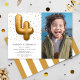 Modern Gold Foil Balloon 4th Birthday Photo Invitation