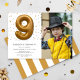 Modern Gold Foil Balloon 9th Birthday Photo Invitation