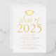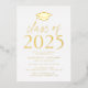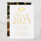 Invite guests to celebrate the grad with our modern class of 2025 graduation party invites. The invites feature a graduation cap at the top with "Class of 2025" displayed in gold foil lettering. Personalise the invites by adding the graduate's name, school, and graduation party details. The gold foil graduation party invites reverse to display the graduate's photo.