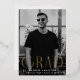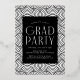 Simple graduation party invitation featuring the graduate's vertical photo with "Grad" displayed in gold foil modern art deco lettering. Personalise the front of the gold foil graduation party invitation by adding the graduate's name, school, and grad year. The invite reverses to display your graduation party details with a black and white geometric swirl background.