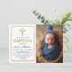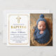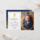 Modern Gold Frame Glitter Navy Blue Baptism Photo Invitation
