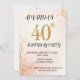 Celebrate the big 4-0 with this stylish and modern birthday invitation! The design features bold, shimmering faux gold glitter confetti sprinkled over a chic peachy-blush watercolor background, perfect for a glamorous party. This personalized invitation is ideal for both men and women, and is easily customizable . Announce your party with sparkle and flair!
