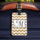 Modern Gold Glitter Chevron Zig Zag Stripe Fabric Print Pattern Monogram Initial Luggage Tag
