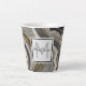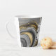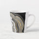 Personalised latte mug with an abstract design with an agate geode mineral pattern. Gold, grey, white, and black swirl together forming elegant waves of colour.