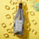 Bottle cooler with an abstract design with an agate geode mineral pattern. Gold, grey, white, and black swirl together forming elegant waves of colour.