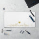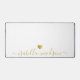 A simple modern desk mat featuring your name in script, and a small gold heart placed above your name for a soft signature touch. This minimalist design gives your workspace a warm personal feel. Perfect for your home office, dorm room, or office. gold color on white.