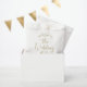 A warm and romantic wedding favour bag showcasing "Welcome to the Wedding of" in flowing gold heart script with a delicate hand-drawn heart flourish. The couple's names and wedding date are displayed in coordinating gold tones on a clean white bag. All text is fully customisable. Perfect for filling with sweets at your welcome table, candy bar, or guest welcome bags.